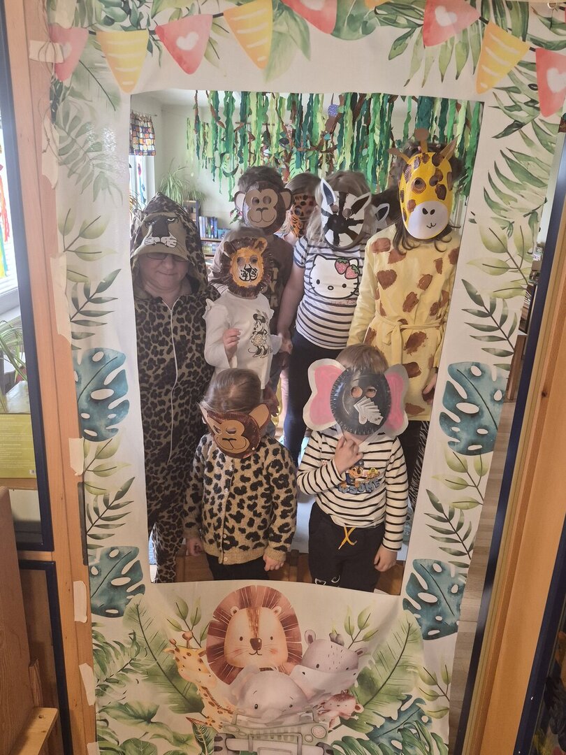 Heute fand unsere fröhliche Mottoparty "Dschungel" statt. Schon in den letzten Wochen bereiteten sich die Kinder mit großer Begeisterung auf diesen Tag vor und bastelten fleißig bunte kreative Masken für diesen besonderen Tag. Es entstanden tolle Tiermasken- von wilden Löwen über lustige Affen bis hin zu Zebras, Giraffen und Leoparden.