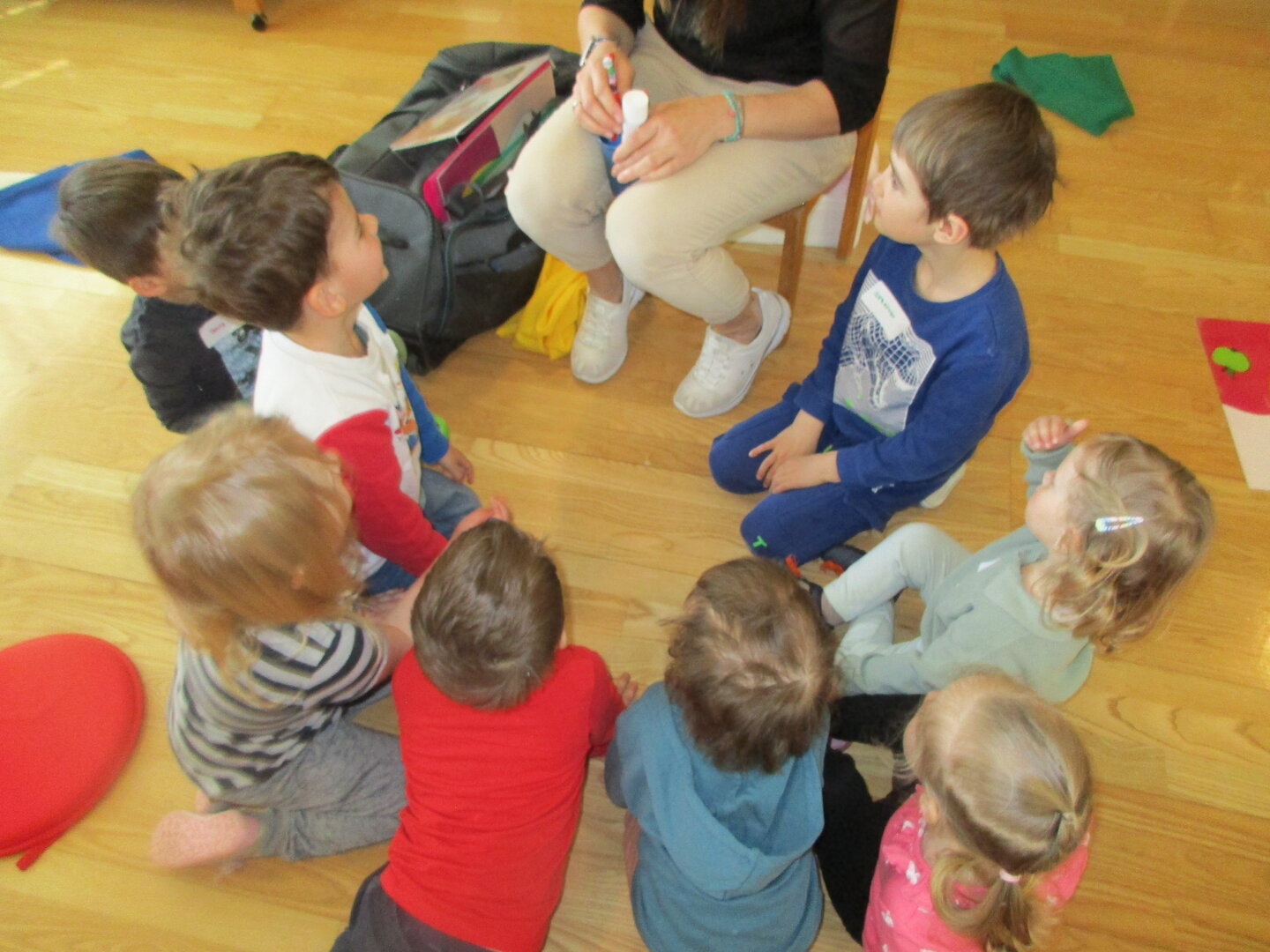 Heute besuchte uns die "Zahnfee" Kerstin und brachte den Kindern spielerisch die richtige Zahnreinigung und Mundhygiene bei.